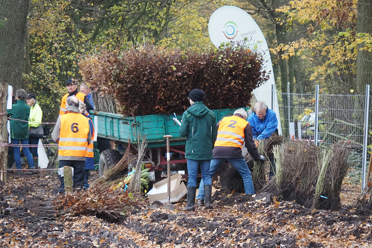 Besonders freuten und freuen wir uns über die große Unterstützung in der Gemeinde Ellerbek. Nicht nur, dass großzügige Spenden zur Schaffung von Klimawäldern eingegangen sind. Über 250 Bürgerinnen und Bürger halfen mit, die Bäume zu pflanzen. Ein Baumschuler sowie ein Landwirt haben bei der Bodenvorbereitung und der Einsaat unterstützt, die Feuerwehr hat ebenfalls Unterstützung geleistet. Besonders bewegt bis heute das Engagement der Grundschule vor Ort. Jedes Schulkind der Hermann-Löns-Schule hat einen Baum für den Klimawald beschafft, und zahlreiche Schüler und Schülerinnen haben mit ihren Eltern kräftig beim Pflanzen unterstützt. Übrigens: Fast alle Pflanzerinnen und Pflanzer kamen klimaschonend mit dem Fahrrad. Wie klasse! Die Stiftung Klimawald ist eine echte „Bürger-Mitmach-Stiftung“, dies hat sich in Ellerbek einmal wieder eindrucksvoll gezeigt.