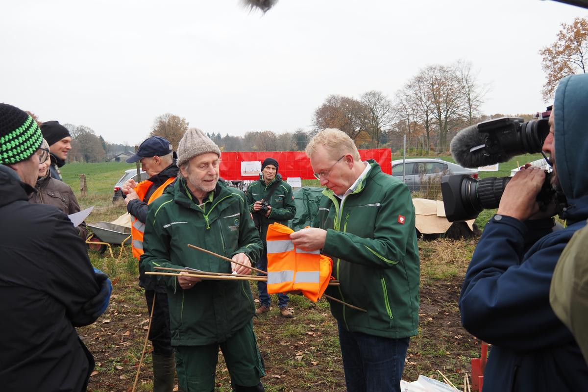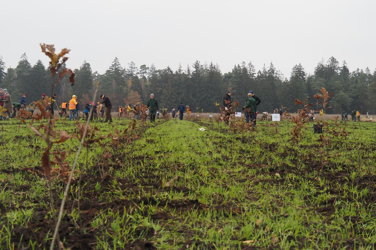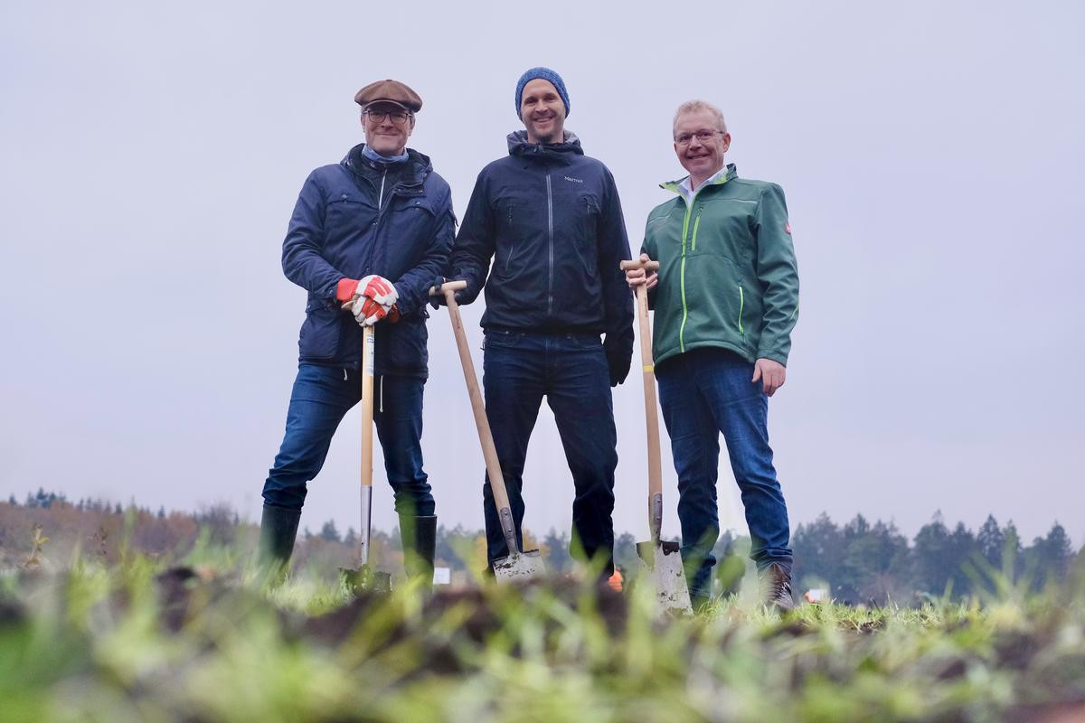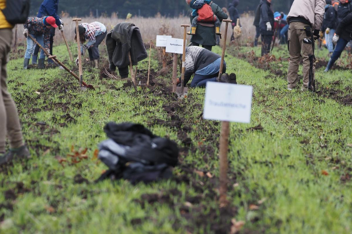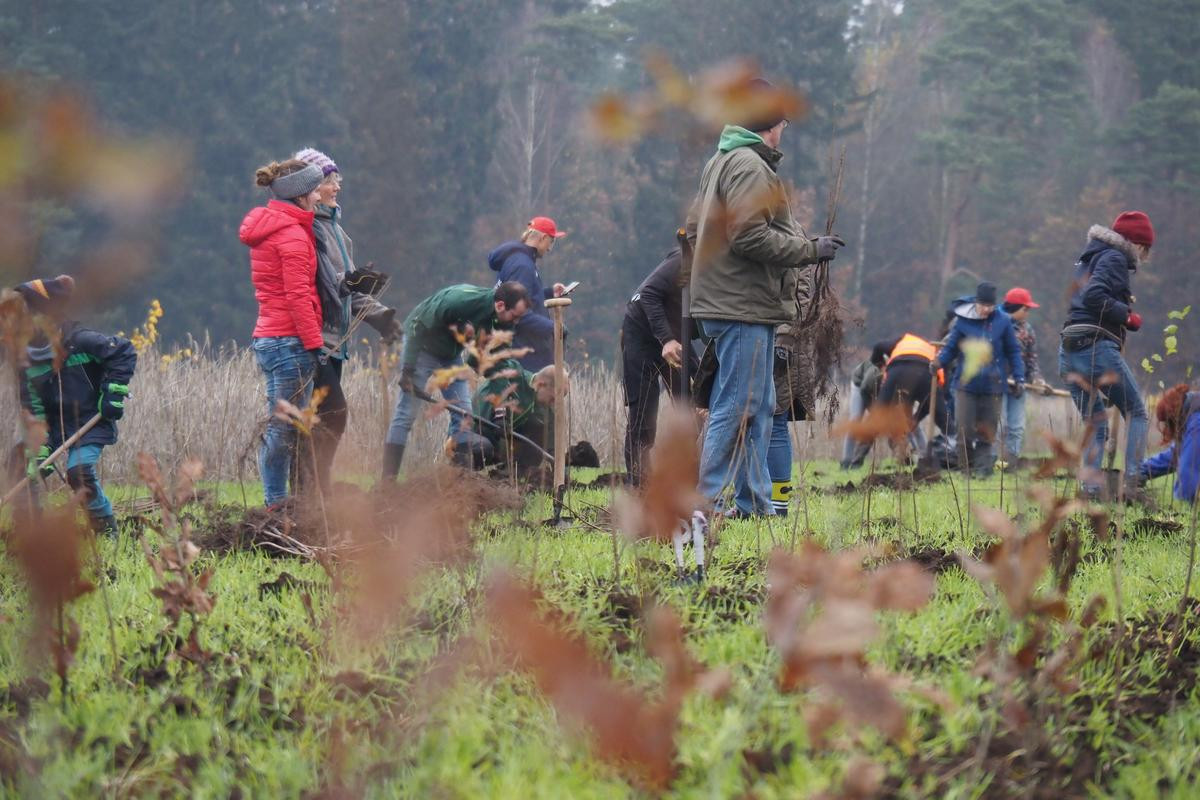 Dieser Klimawald ist knapp sechs Hektar groß und liegt in der Gemeinde Bark, im Kreis Segeberg. Die Aufforstung begann im Spätherbst 2023 und wurde im Rahmen einer großen öffentlichen Pflanzaktion mit der Bepflanzung des „letzten Hektars“ am Samstag, 16. November 2024 abgeschlossen. Allein an diesem Tag waren rund 150 Aktive, von jung bis alt, auf der Fläche und haben die letzten rund 5.000 kleinen Bäume gepflanzt. Neben Bürgerinnen und Bürger aus Bark und Umgebung schwangen auch die Mitarbeitenden der Sparkasse Südholstein in großer Anzahl sowie der BMS die Spaten. Ebenfalls in besonderer Erinnerung mit diesem Pflanztag bleibt Allen wohl das Vorfahren des Möbel Kraft-LKWs, dem rund 20 Translogistik-Azubis entstiegen, die gleich mitpflanzend ins Geschehen eingriffen und mit großem Spaß dabei waren.