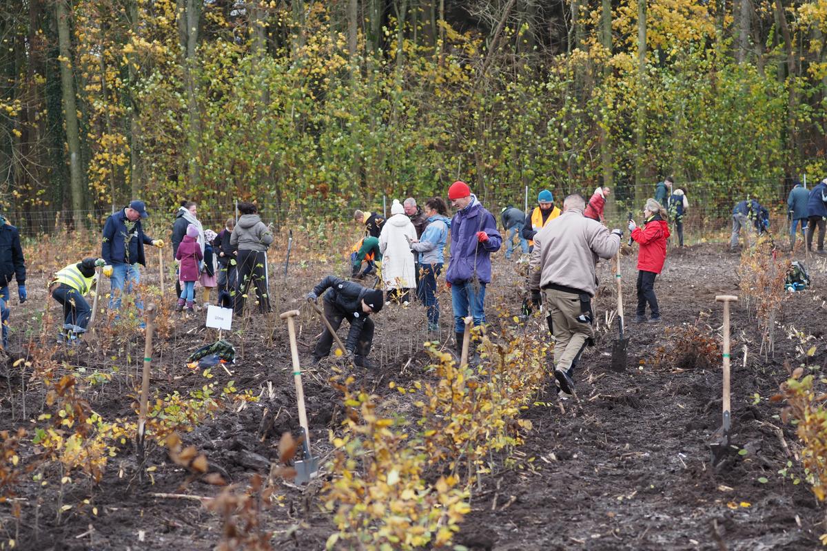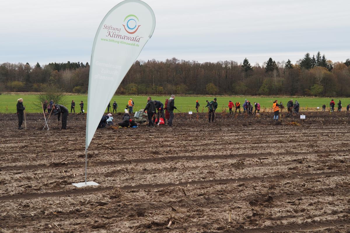 Die gemeinnützige Stiftung Klimawald hatte Bürgerinnen und Bürger am Samstag, 15. November 2025 eingeladen, in Willenscharen mit zum Spaten zu greifen und mitzupflanzen.